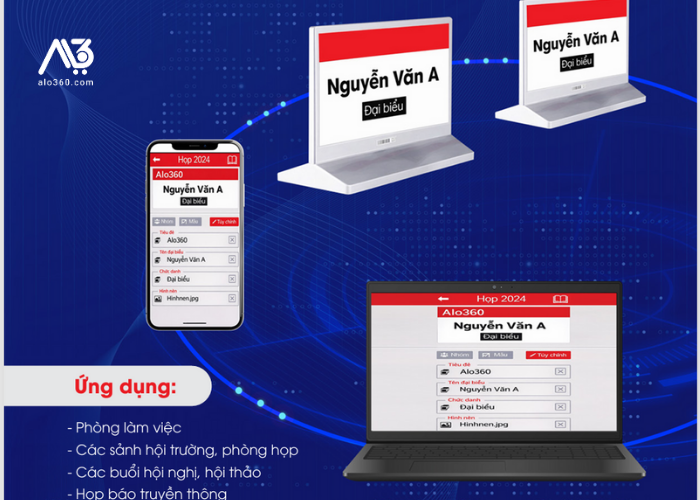Bảng tên điện tử được vận hành thông qua phần mềm quản lý chuyên dụng, cho phép quản trị và cập nhật nội dung từ xa trên nền tảng web và thiết bị di động. Người dùng có thể phát nội dung đồng loạt cho nhiều bảng tên cùng lúc, giúp tiết kiệm thời gian và đảm bảo tính đồng bộ trong các sự kiện, hội nghị quy mô lớn.